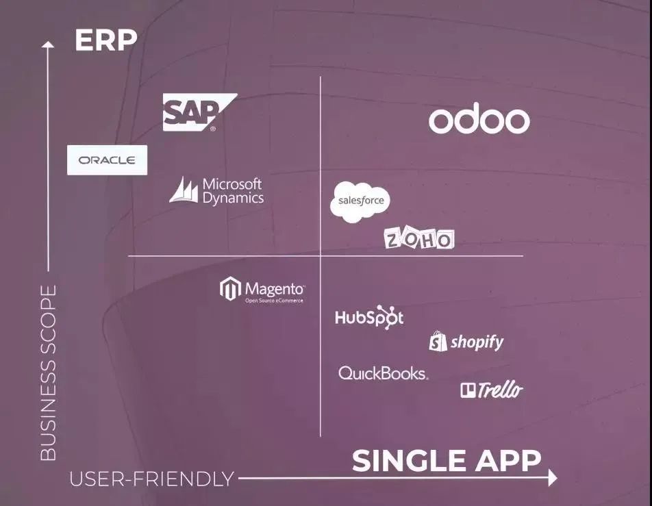 Odoo瞄准的是应用级的开箱即用,依托于多年的SaaS交付和生态社区发展,Odoo已经积累了一大批围绕企业管理场景的SaaS应用,成为SaaS聚合的典型代表。