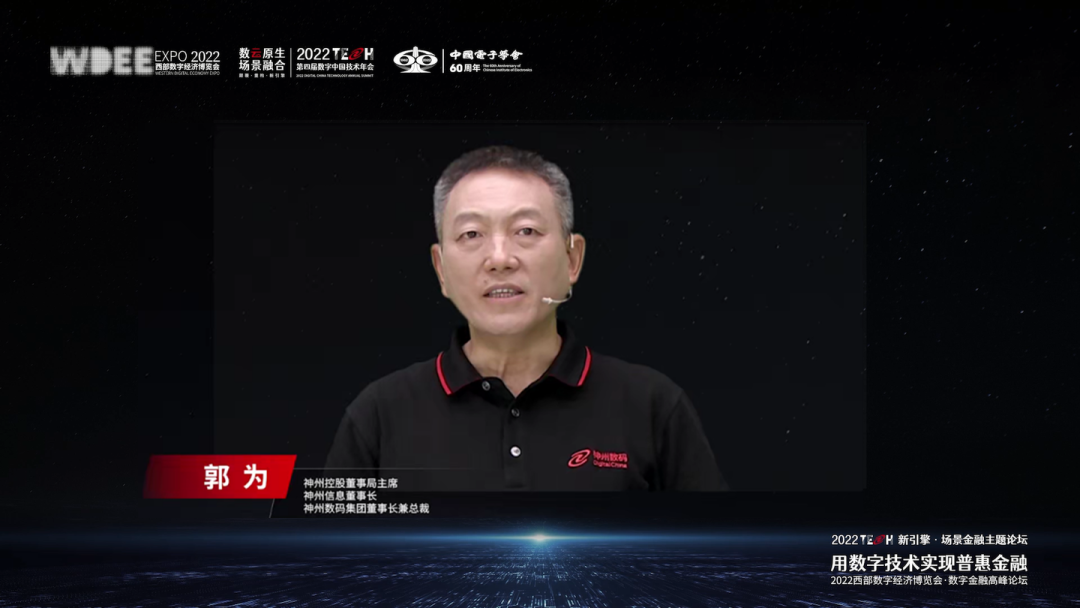 作为联合承办方,神州控股董事局主席、神州信息董事长、mile米乐集团董事长兼总裁郭为发表“数字化的力量”主题致辞,分享了他对数字经济时代金融业变革的思考。郭为谈到,神州信息是中国最早从事银行信息化建设的科技企业,伴随了中国银行业整个数字化进程。进入数字化时代,银行的数字化目标也发生了根本性的变化,即面向投资人、股东实现资产规模最大化,面向客户提供服务便利性,自身如何基于新的IT架构实现业务敏捷化,场景金融将是实现这些目标的重要手段。基于数云融合,神州信息发布了场景产品化的创新性银行架构ModelB@nk 5.0,一是为客户提供订阅式、点播式的金融服务,二是帮助银行实现内部管理的高效、积累更多数据资产,同时打造了信创全家桶“神州信创云”助力筑牢金融安全。未来,神州信息希望有更多机会与政府、客户及同业伙伴,共同探讨,为中国金融数字化转型贡献力量。